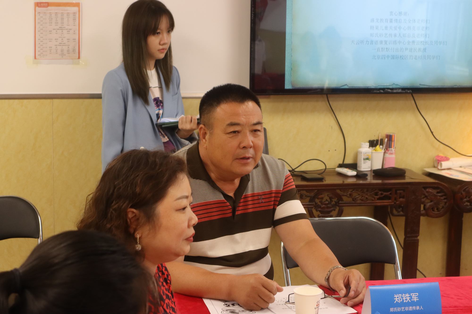 2022年8月9日,由中国首批在册的中小学生志愿者王晰乐发起的“蒲公英”孤残及留守儿童生存技艺培养项目在北京盛龙教育集团朝阳门校区宣布正式启动。兴隆县郑氏砂艺文化有限公司执行董事长、郑氏砂艺第五代非物质文化遗产传承人郑铁军参加启动仪式,并为“非遗”文化助爱心慈善事业作了致辞,寄希望于参加培训的孤残及留守儿童学会一项谋生技能,更好的传承非物质文化遗产,最终实现文化脱贫、艺术致富的美好愿景。北京盛龙教育集团董事长董倩、蔡万莉校长、郑氏砂艺艺术总监(原清华大学文化与旅游产品设计研发中心总监)尹建民教授、北京天云听力言语康复训练中心全贵云校长及学生们、北京糖果儿童关爱中心韩克菲老师及北京四中国际校区的首批非遗手艺传承小使者参加了项目启动仪式。