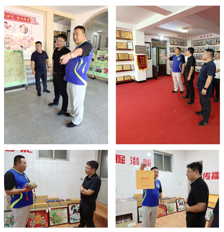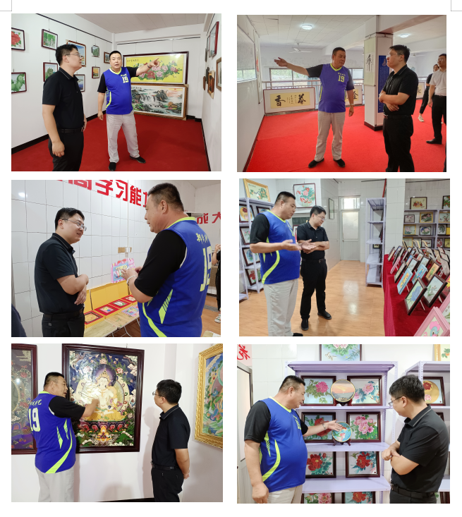 任杰副县长一行先后参观了郑氏砂艺非遗扶贫成果展板、郑氏砂艺荣誉墙、郑氏砂艺非遗作品和郑氏砂艺非遗文创产品。并与郑氏砂艺第五代传承人郑铁军进行了深入交谈,倾听了郑铁军对非遗文化传承、保护和发扬的意见建议,对发展非遗文化产业项目的想法和思路。县领导对郑氏砂艺非遗文化传承和保护工作给予了充分肯定和赞扬,认为郑氏砂艺非遗文化产业发展基础好,尤其是传统工艺的继承与发展、产品创新和传承独具一格。