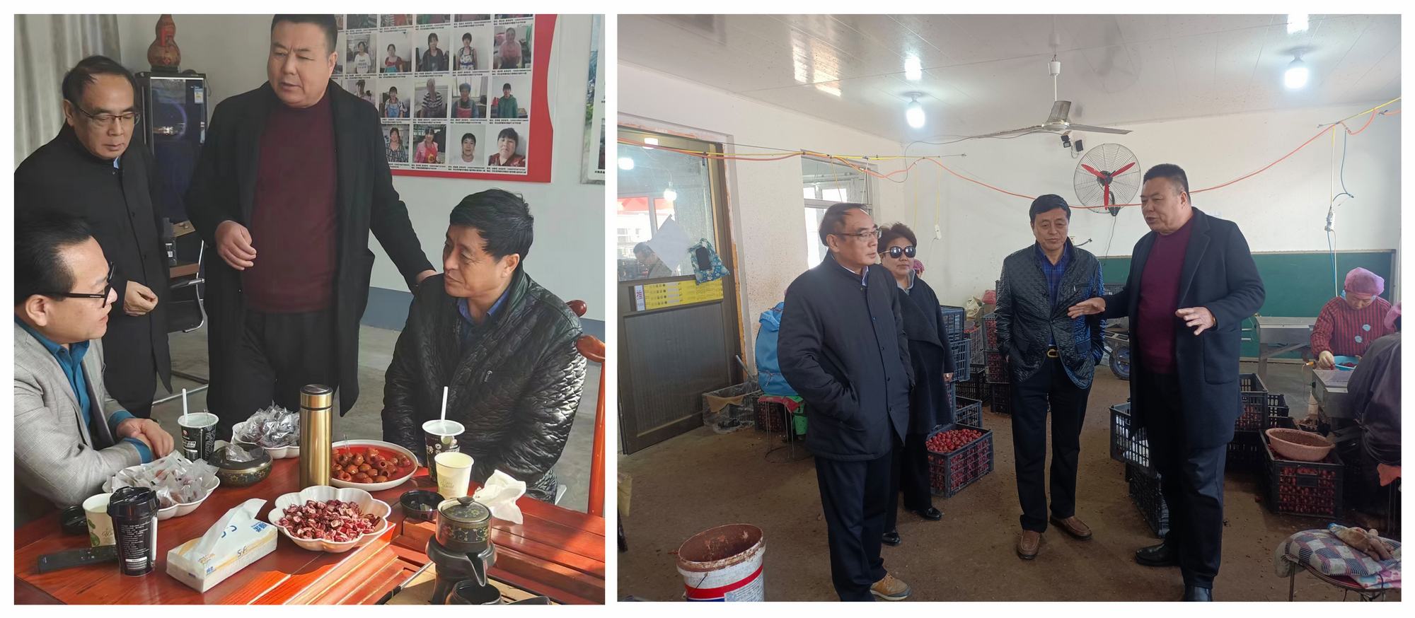 上午8时40分,考察组来到下台子村郑氏砂艺乡村振兴就业基地,参观了郑氏砂艺乡村振兴就业生产车间及金土地山楂种植农民专业合作社的硬件设施,仔细听取了郑铁军董事长对企业目前发展状况和未来发展规划的介绍,详细了解了企业“非遗文化+科技+农业+旅游”的具体做法和工作经验,随后双方就进一步加强合作进行深入交流。