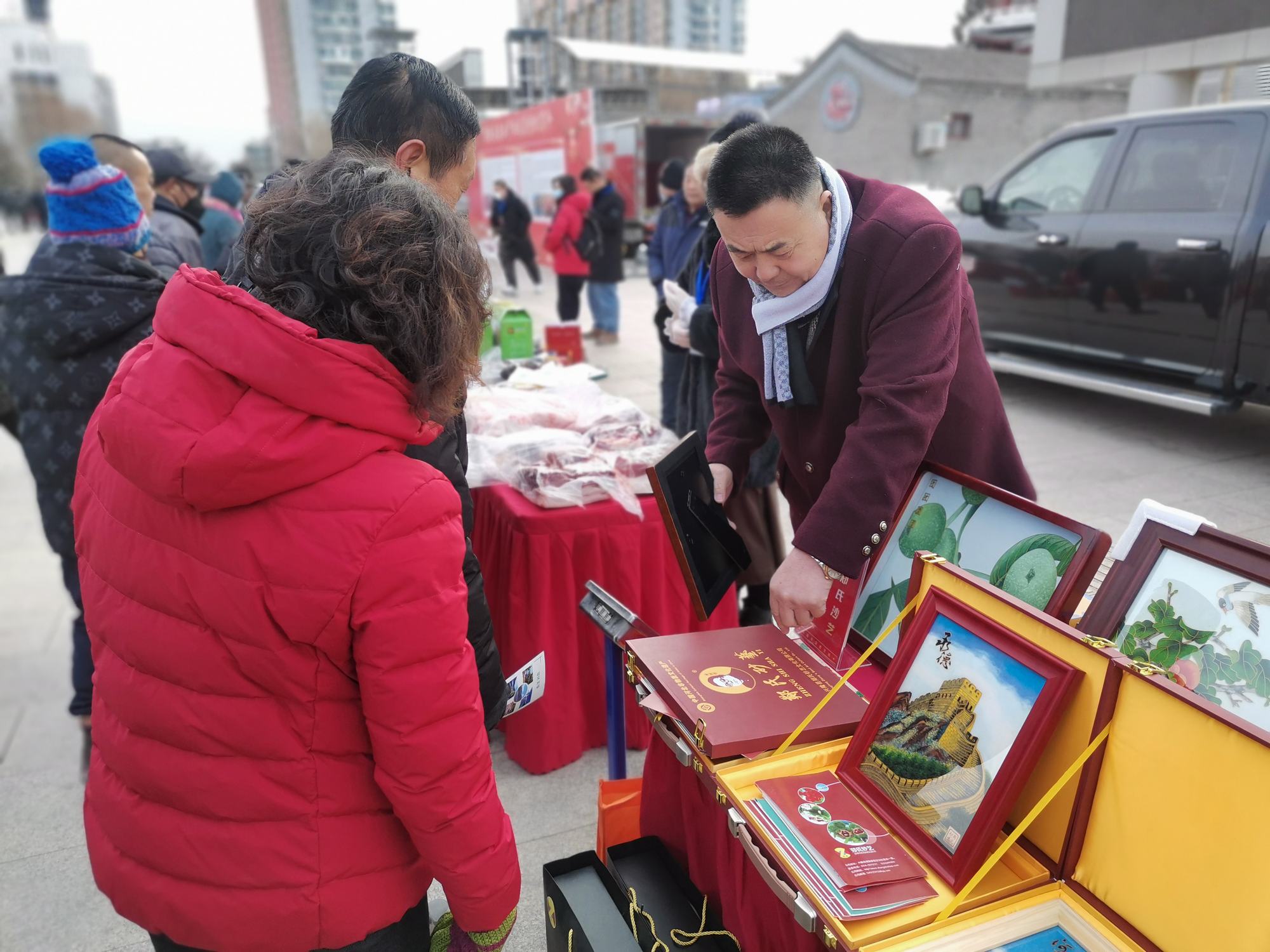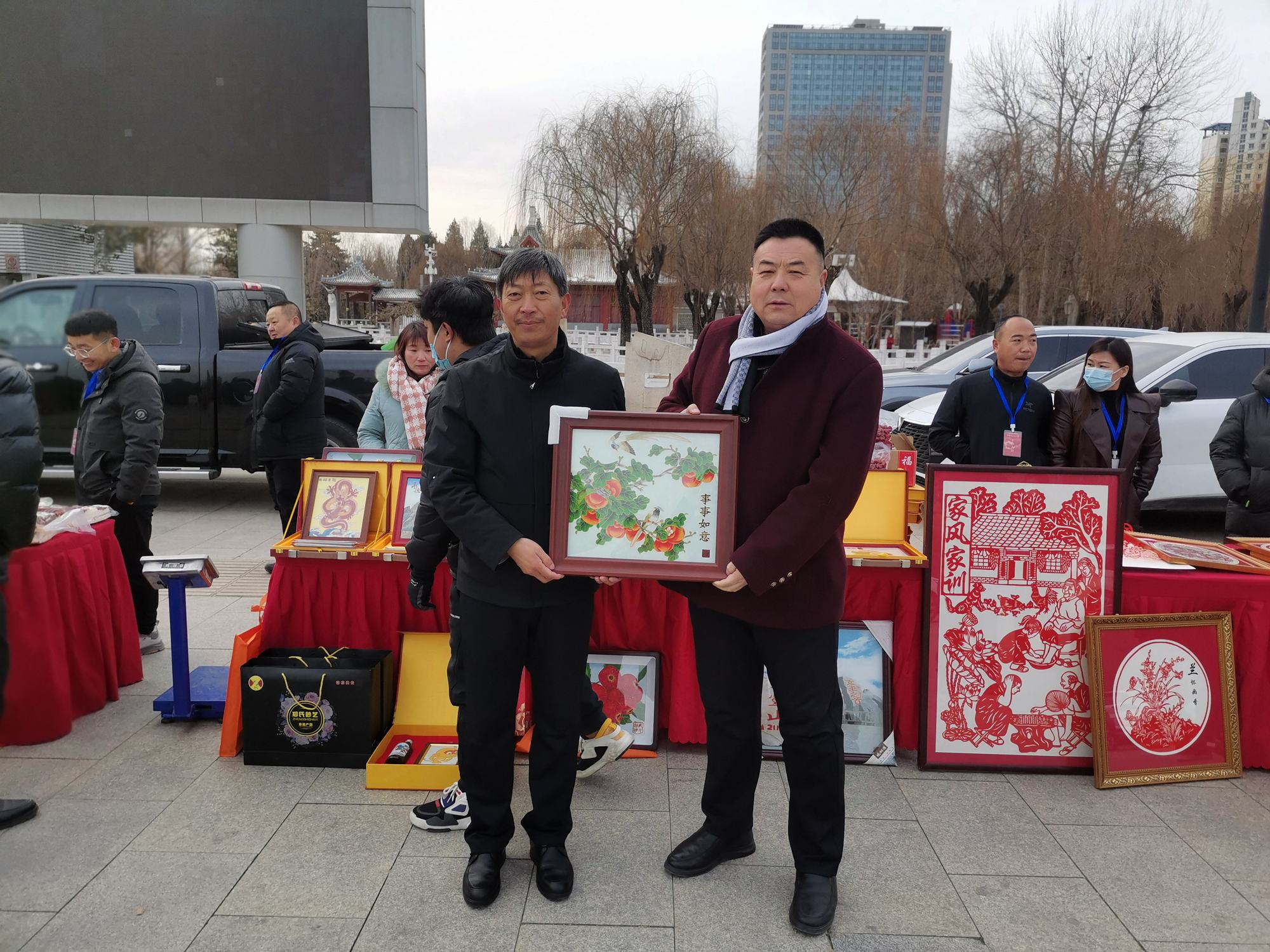 2024年1月20日,由兴隆县人民政府主办,平谷区人民政府协办的主题为“兴隆年货进京城”活动在北京市平谷区世纪广场盛大开启,出席活动的主要领导有兴隆县委常委、兴隆县人民政府副县长王新波,北京市平谷区人民政府党组成员、副区长马冬梅,兴隆县人民政府副县长孟庆华、兴隆县人民政府副县长李彦国、兴隆县委宣传部常务副部长谭振东、兴隆县农业农村局局长赵建辉、兴隆县发展和改革局局长凌国东、兴隆县旅文局局长庄云飞、兴隆县市场监管局局长赵海江、兴隆县各乡镇乡镇长以及兴隆县众多企业家。郑氏砂艺应邀参加了此次活动,受到大家的一致好评。