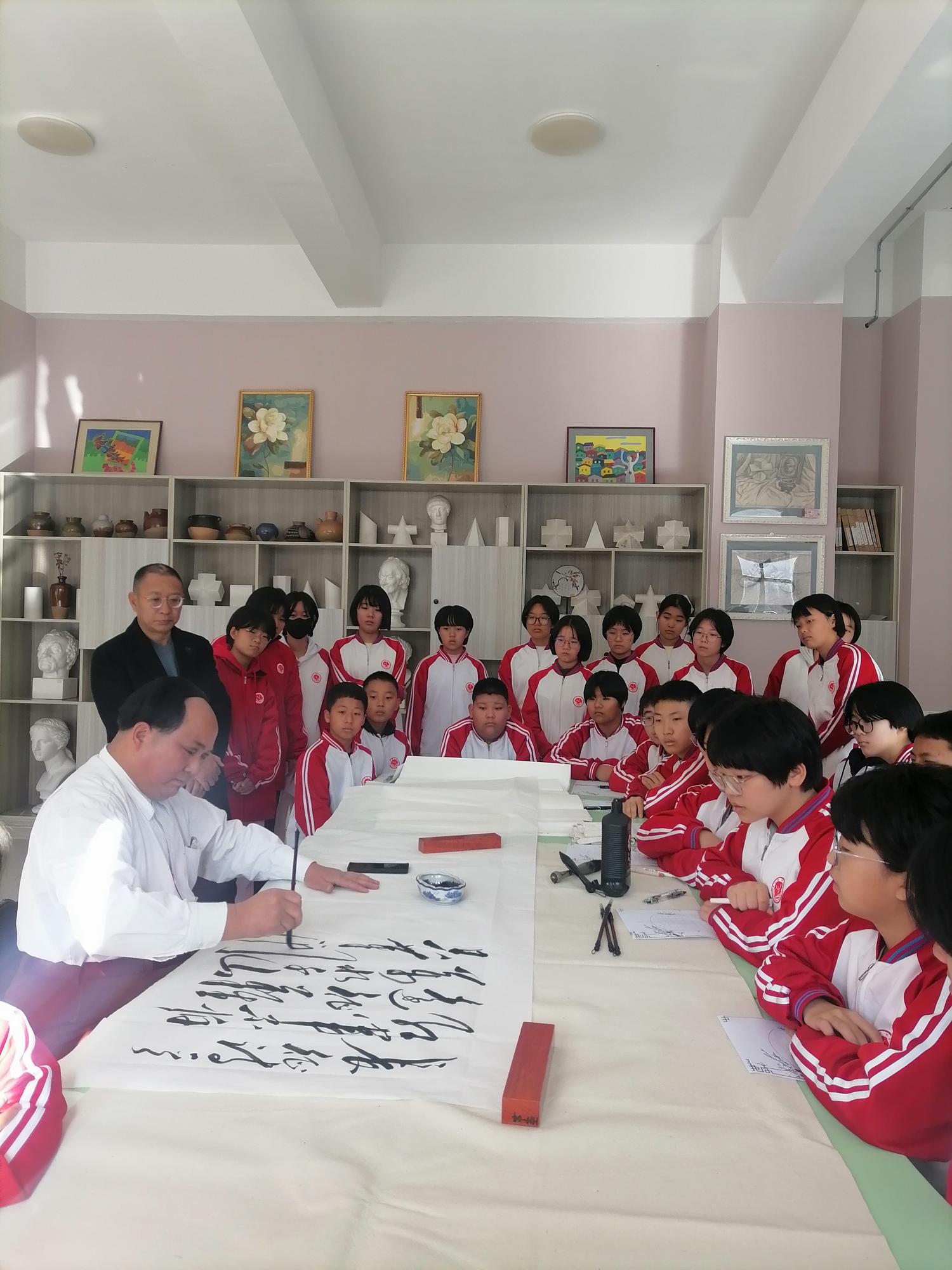 近日,兴隆县民间文艺家协会(简称“民协”)主席郑铁军携手国家特型演员、国家一级书法家赵士奎先生,以及兴隆县郑氏砂艺非遗博物馆秘书长赵文红女士,一同走进兴隆县六道河中学,开展了一场传统文化进校园活动。本次活动意在让学生亲身感受并领悟传统文化的独特韵味。