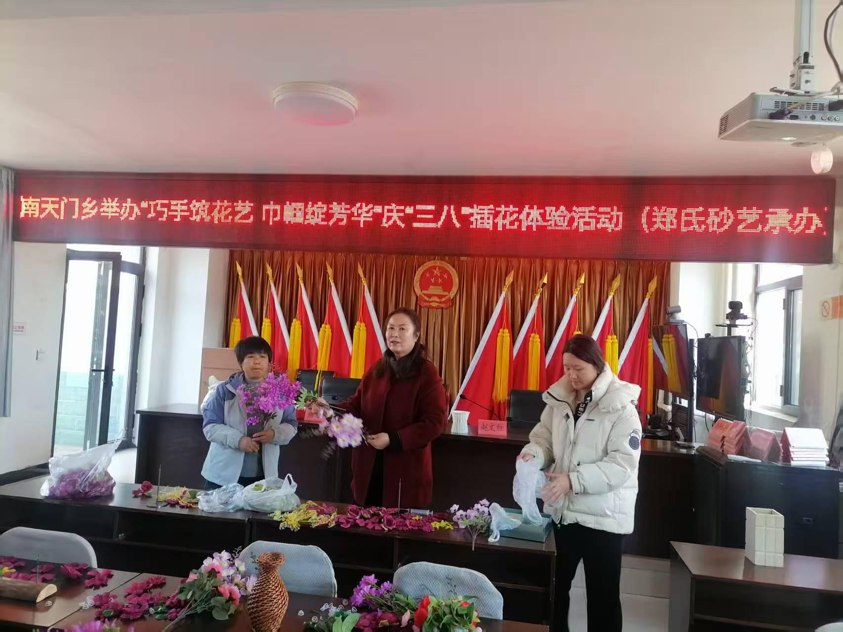 2025年3月6日,由南天门满族乡人民政府主办,郑氏砂艺承办的“巧手筑花艺 巾帼绽芳华”庆“三八”插花体验活动在南天门乡政府圆满结束,吸引了30余名南天门乡农村女性的积极参与。此次活动通过绢花制作体验,生动展示了传统工艺在乡村振兴中的积极作用,为乡村发展注入了新的活力。