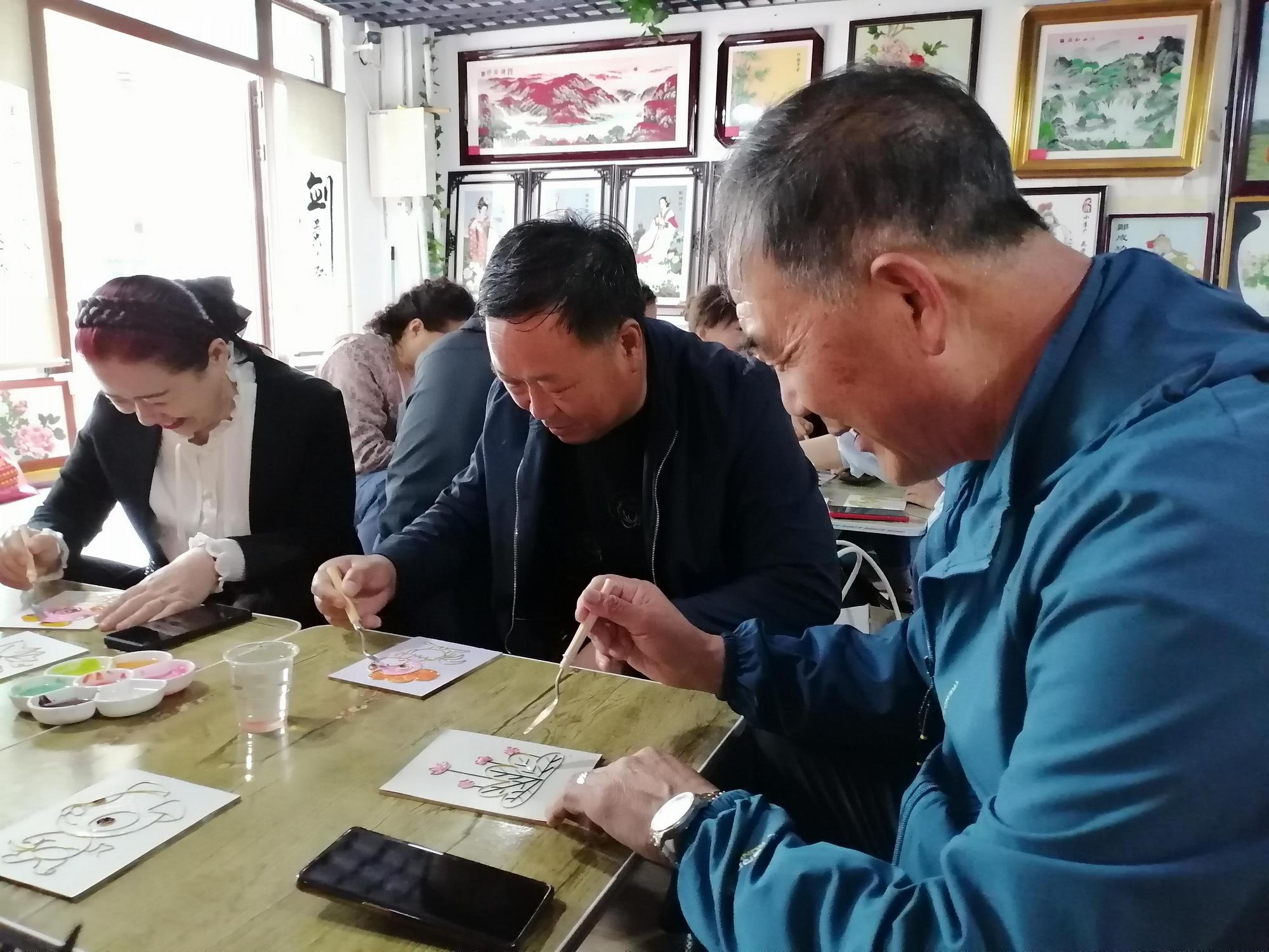 活动现场开放非遗工坊体验区,由省级工艺美术师指导参与者完成掐丝点蓝等核心工序,制作完成的砂艺作品经博物馆免费装裱后赠予创作者。