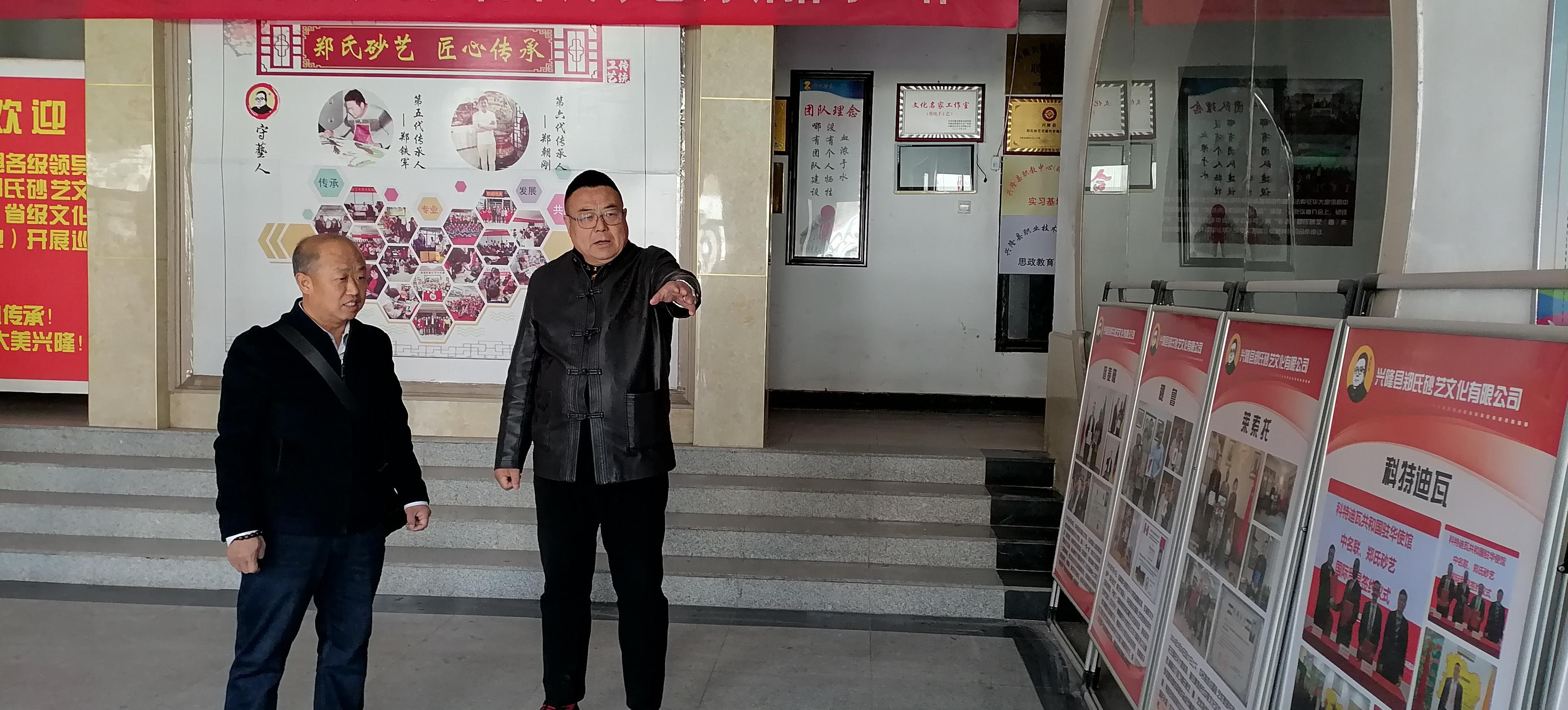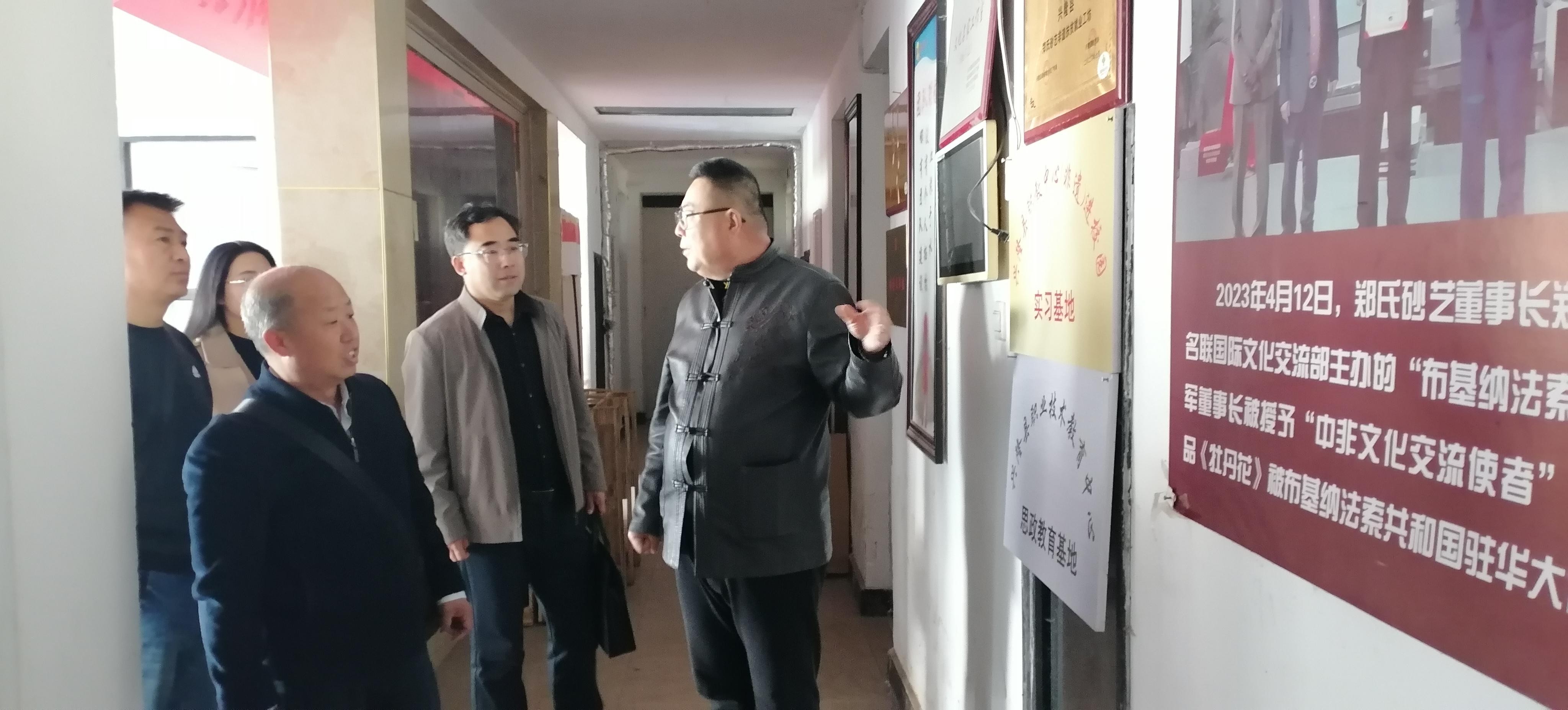2026年3月28日,河北民族师范学院外国语学院党总支副书记、院长王成山,党总支副书记、纪检委员柴树金,党总支组织委员、副院长张永利,法语教师王晓宁莅临郑氏砂艺参观考察,实地调研省级非物质文化遗产郑氏砂艺的传承与发展情况。省级非物质文化遗产郑氏砂艺代表性传承人郑铁军全程陪同参观,并做详细讲解。